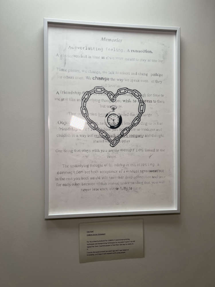 The students used a range of techniques including drawing, watercolours, digital print and photography, with many pieces inspired by nature such as parks, rivers and flowers. One artwork also includes an original poem written by a student.
