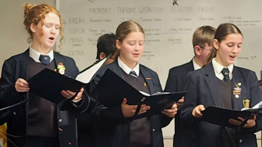 Students from the school’s senior choirs provided entertainment, with everyone joining in Christmas carols.